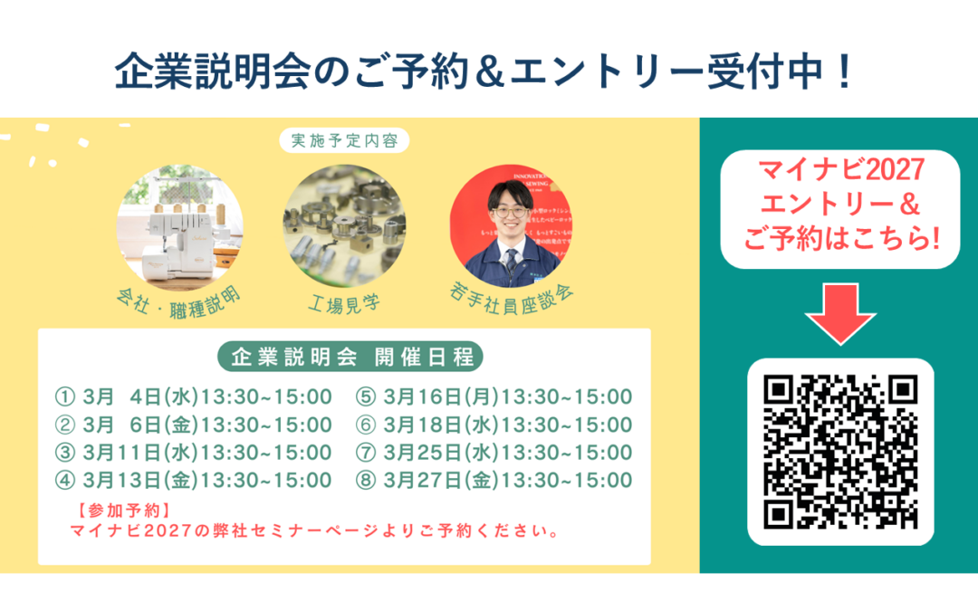 マイナビ2027にて、27卒向け企業説明会(3月日程)の参加予約を受付中です!